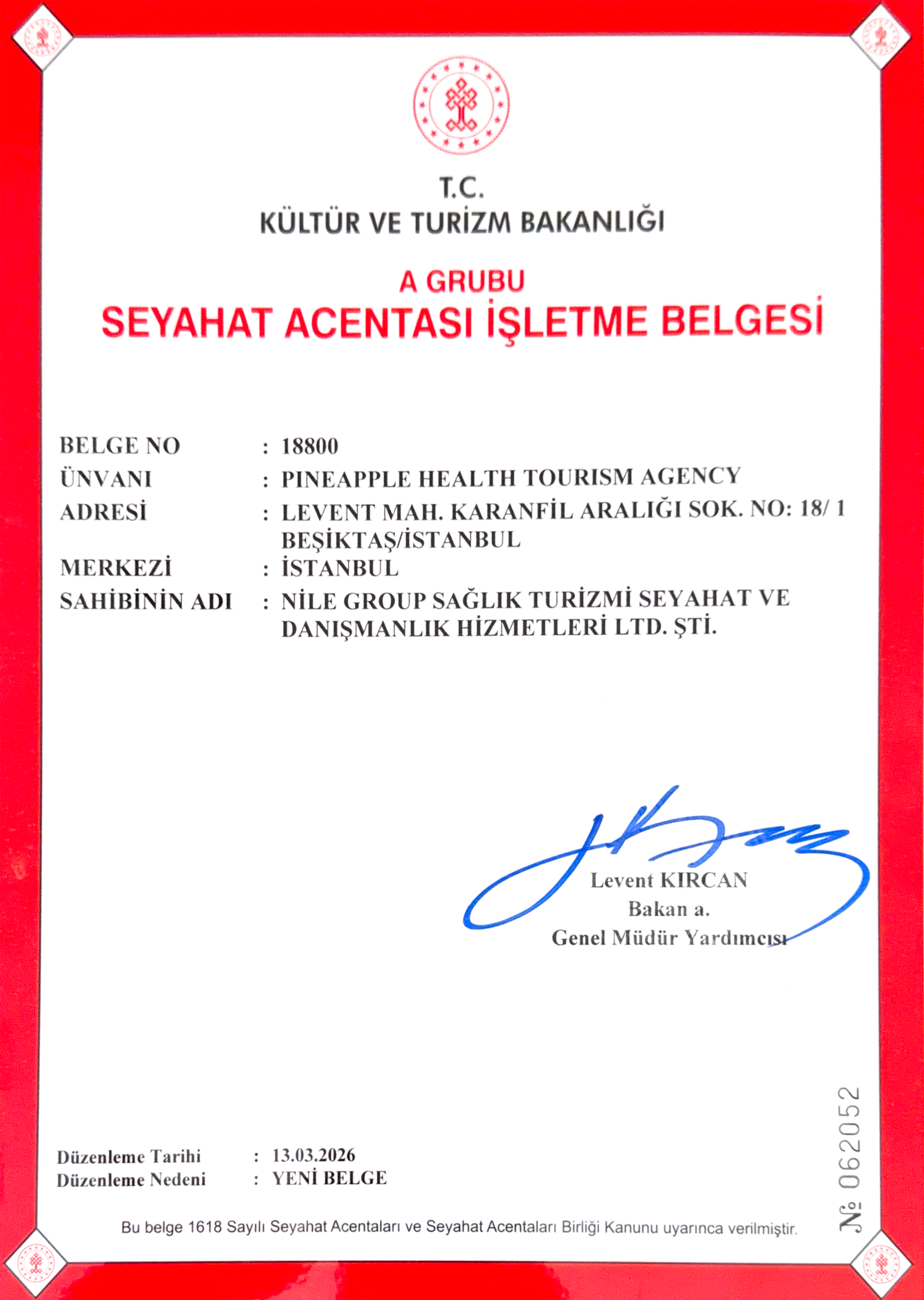 Uluslararası akreditasyona sahip kliniklerle çalışarak, tüm süreçlerimizde hasta güvenliğini ve yüksek hizmet standartlarını önceliklendiriyoruz. Pineapple güvencesiyle, dünya standartlarında tıbbi bakıma ulaşmanızı sağlıyoruz.